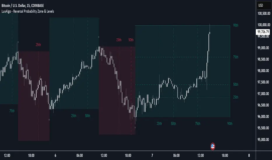 The Reversal Probability Zone & Levels tool allows traders to identify a zone starting from the last detected reversal to highlight the probability of where the next reversal would be from a price and time perspective.