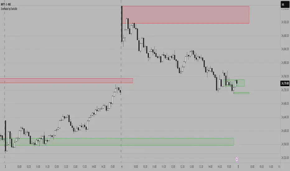 ZoneRadar is a tool designed to detect and visualize hidden buy or sell pressures in the market. Using a Z-Score based imbalance model, it identifies areas where buyers or sellers step in with strong momentum and highlights them as dynamic supply and demand zones.