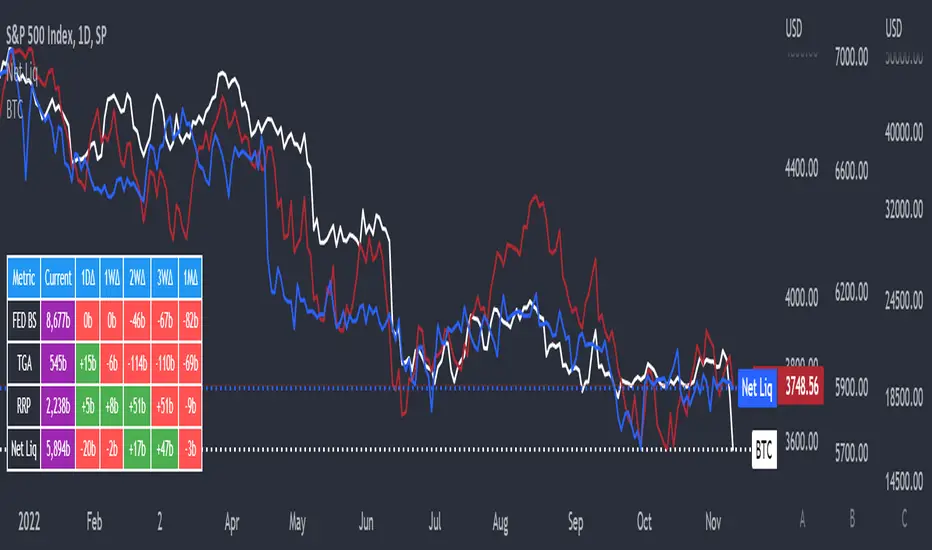 The Net Liquidity function is simply: Fed Balance Sheet - Treasury General Account - Reverse Repo Balance