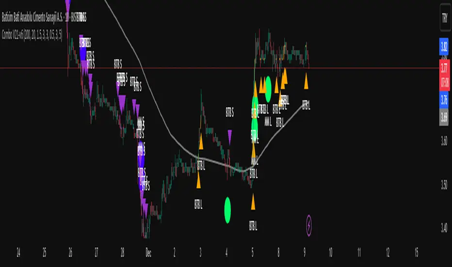 This indicator is the improved and professional version of the earlier Combo V16. The logic has been streamlined by removing less critical patterns and focusing exclusively on the three most powerful strategies—Micro Map (MM), Spike to 2nd Leg (SP2L), and Back To Break Even (Pro BTB). These three form a "strong triangle" of high-probability entries, all strictly filtered by a long-term Simple Moving Average (SMA) to ensure trades align with the prevailing market trend.