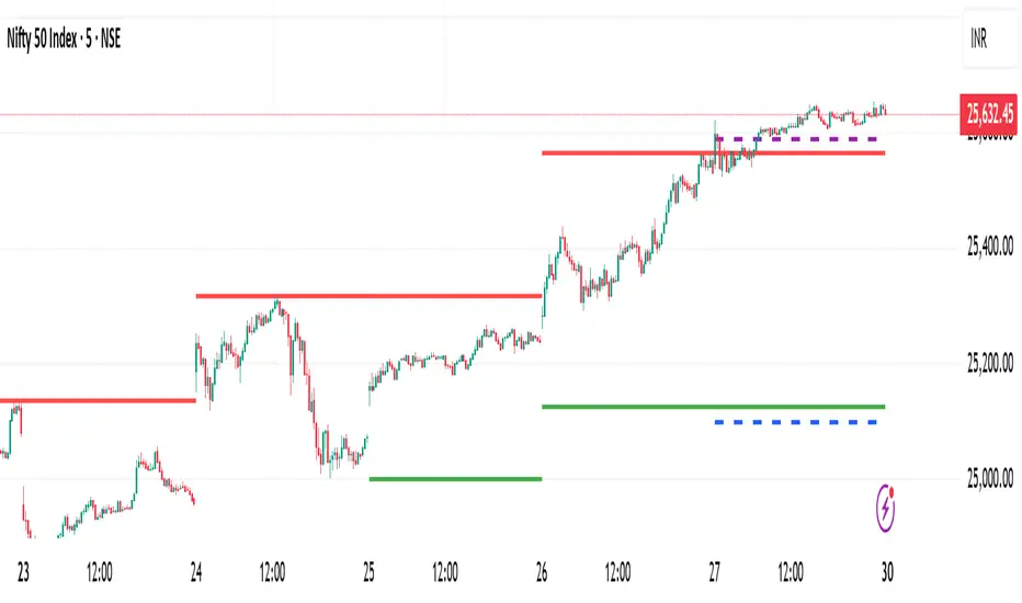 Line Extension: All lines start at the beginning of the current day and extend to the right edge of the chart, updating dynamically with each new bar.