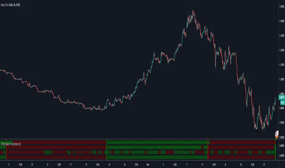 We used the best combination of indicators so you can be sure that, no matter what ticker you're trading (Forex, Stocks or Crypto) - when you get a full green, or full red meter, the price is 100% trending in that direction!