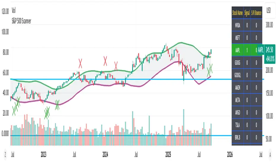 Catch early bullish & bearish signals in S&P 500 stocks. Real-time TradingView scanner for scalping, day trading & swing trading with non-lagging alerts.