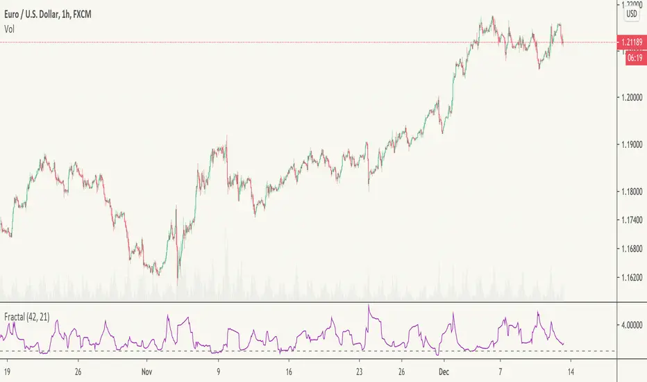 When the value of the Fractal indicator reaches 1 we might expect a minor or significant trend a reversal soon. On the contrary, trend continuation is more likely for higher indicator values.