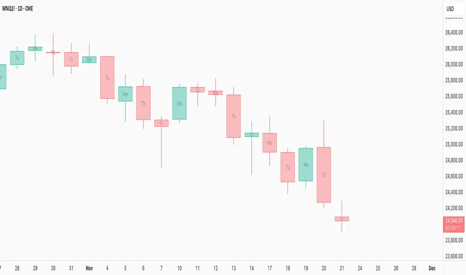 This indicator displays a short label on each bar showing the day of week on daily charts and the hour on hourly charts. It supports multiple timezones and allows customization of label color, background, and font size.オープンソーススクリプト