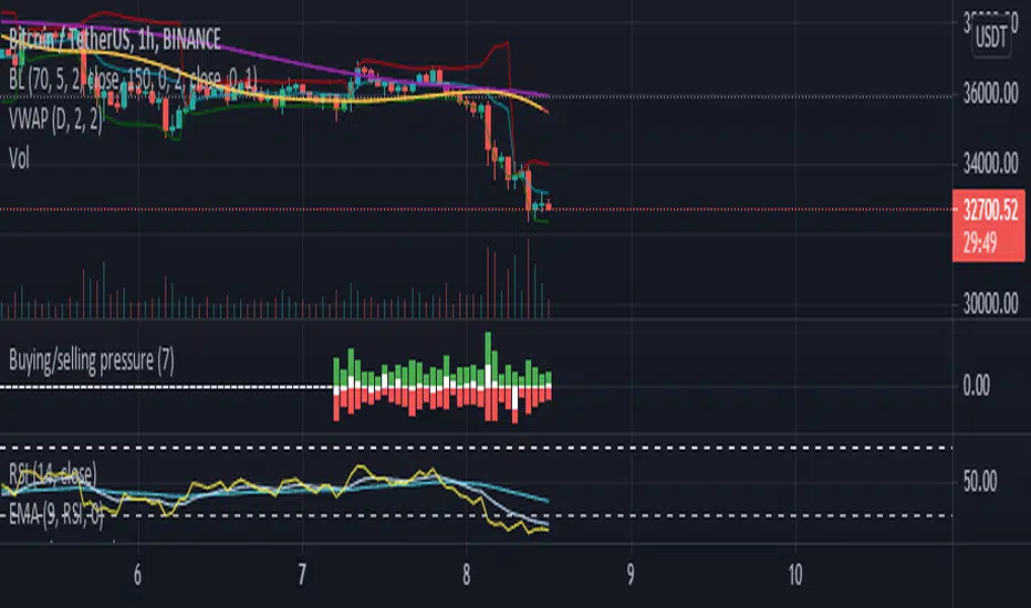 Red bar for selling pressure, calculated by multiply Volume change and the decreasing of price