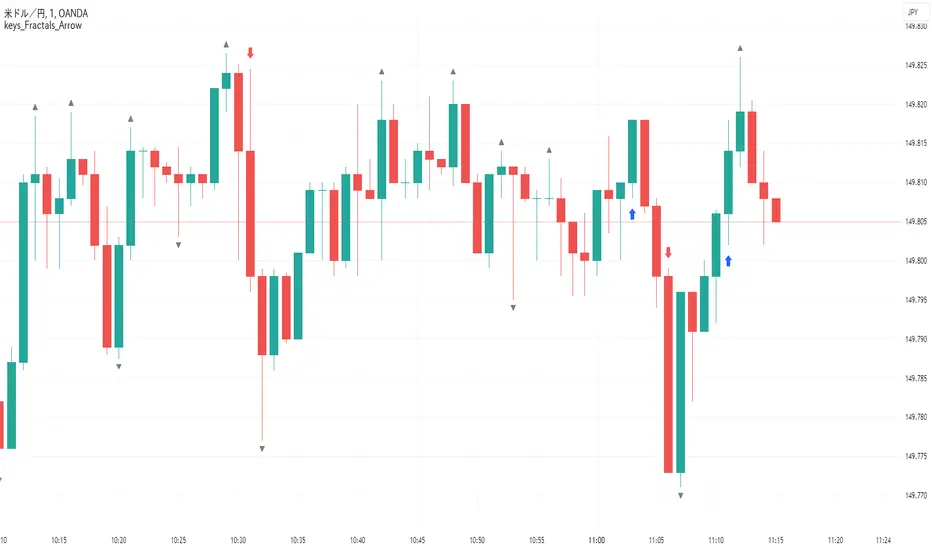 シンプルなフラクタルから高値と安値をブレイクした方向に矢印が出るインジケーター