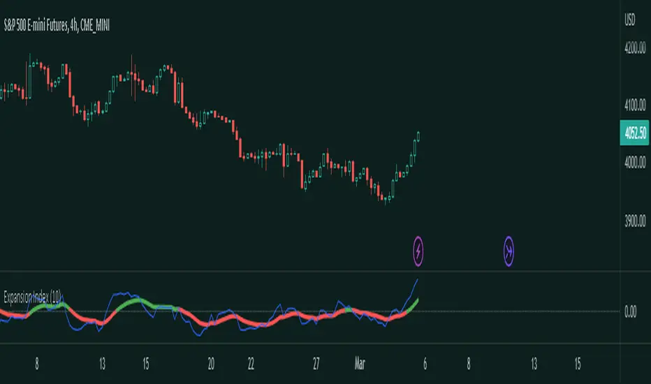 The expansion index is a concept that charts the relative strength or weakness based on the comparison of recent price changes and overall prices changes for the period.