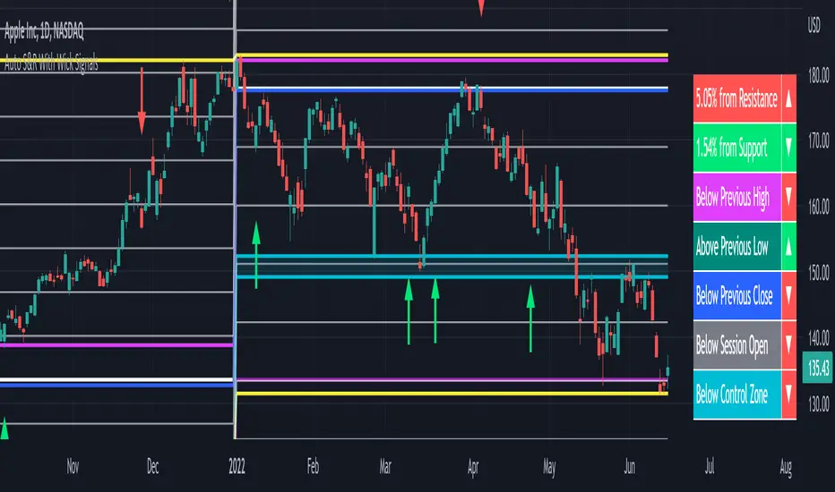 更新済 Auto Support & Resistance With Wick Signals & Percentage Gaps