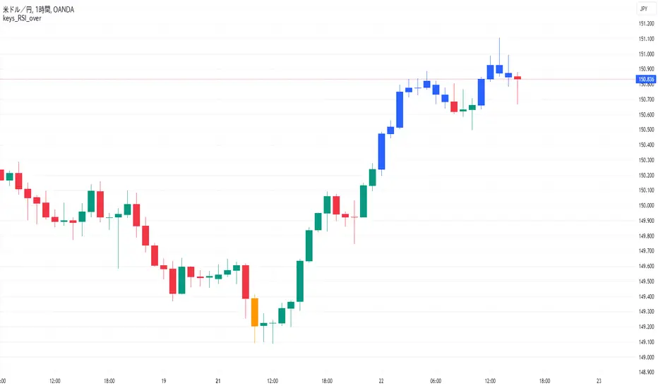 RSIが買われ過ぎ/売られ過ぎのときにローソク足の色が変わるインジケーター