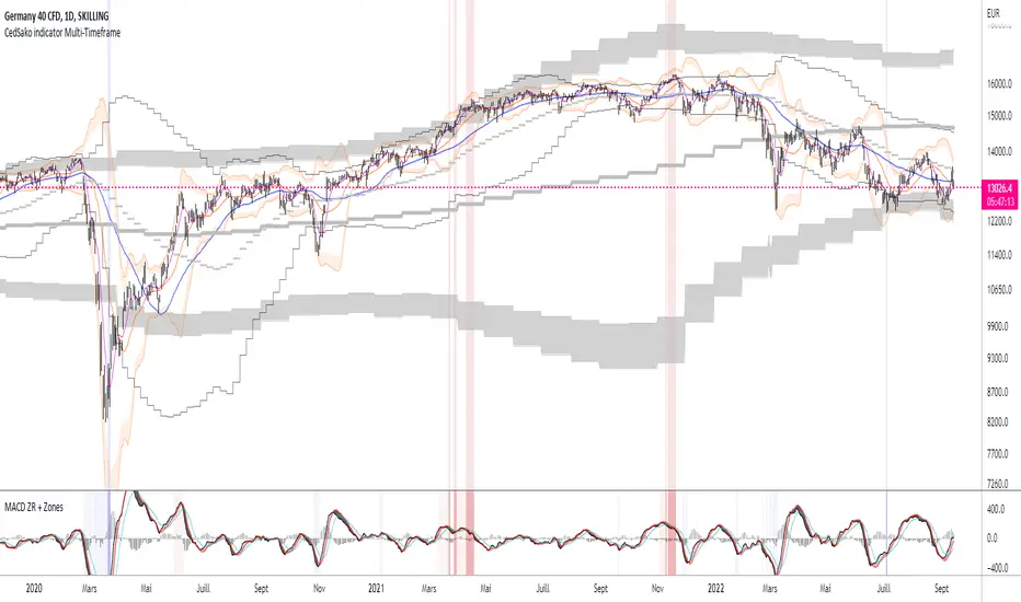This indicator, associated with my indicator "MACD ZERO RETARD + ZONES IMPORTANTE" will allow you to draw your attention to areas of interest and thus work on your positions. Works on intraday, medium and long term (to be determined if it also works for scalping).