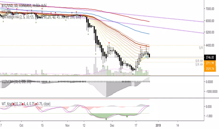 * Supplemental to bullish or bearish trend confirmations with Heikin Ashi candles (e.g. 10/20 MA cross)