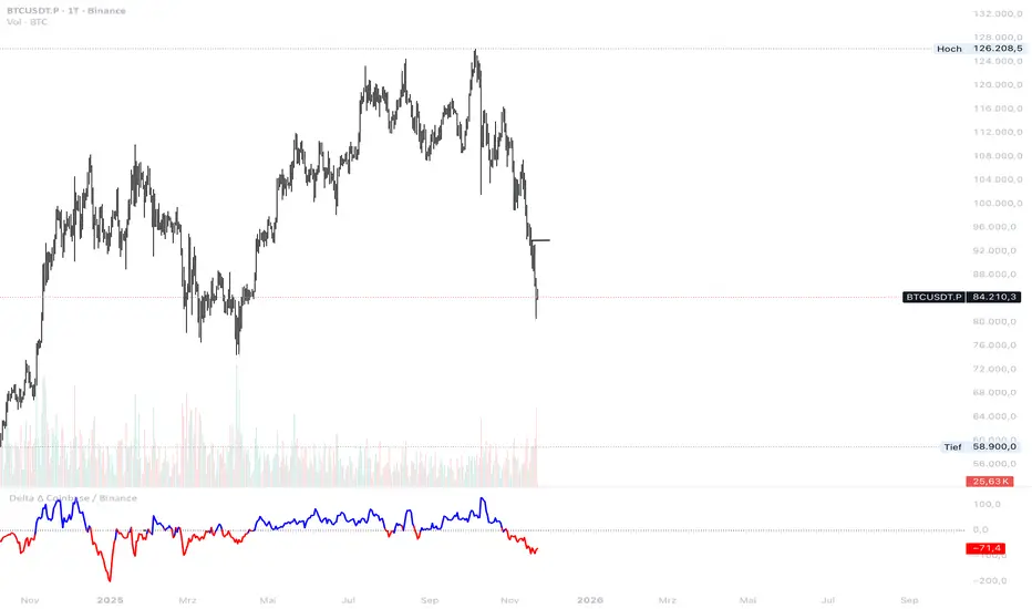 The Delta Coinbase Binance indicator simply shows the price difference (spread) between Bitcoin on Coinbase (BTC/USD) and Binance (BTC/USDT). If positive (e.g., +$50), it means Coinbase price is higher, signaling strong buying from US investors (premium). If negative (e.g., -$100), Coinbase is cheaper, indicating selling pressure from the US side (discount). It's smoothed with SMMA(2) for clearer trends.