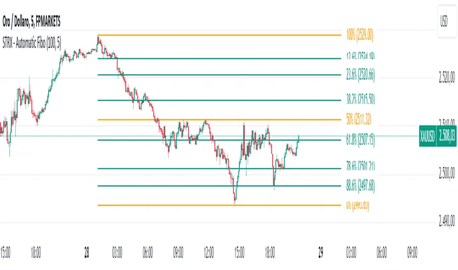 The STRX - Automatic Fibo tracks Fibonacci levels in real time, automatically updating the lines when new highs or lows are confirmed, ensuring that traders always have access to updated levels relevant to current market conditions.