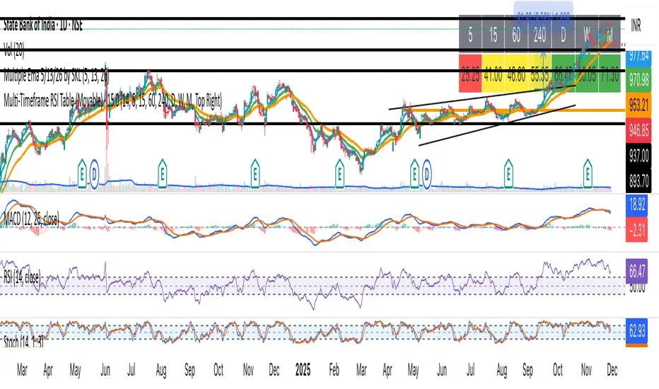 Green indicates RSI above 60 - Yellow indicates RSI Below 40