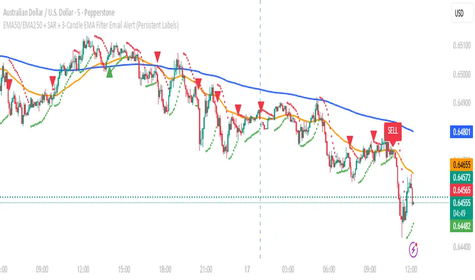 EMA50/EMA250 + SAR + 3-Candle EMA Filter
