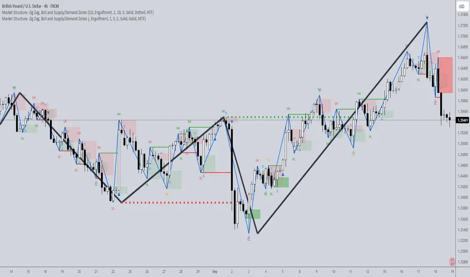 This script presents a complete and original market structure framework that identifies price structure in real-time using a multi-step approach. It combines order blocks, internal market shifts, swing point analysis, breaks of structure, and a zigzag visual aid to help traders identify the market’s internal and external flow on any timeframe.