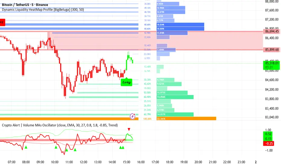 Volume MAs Oscillator is a dynamic indicator that measures how far the price moves away from its volume-weighted moving averages.