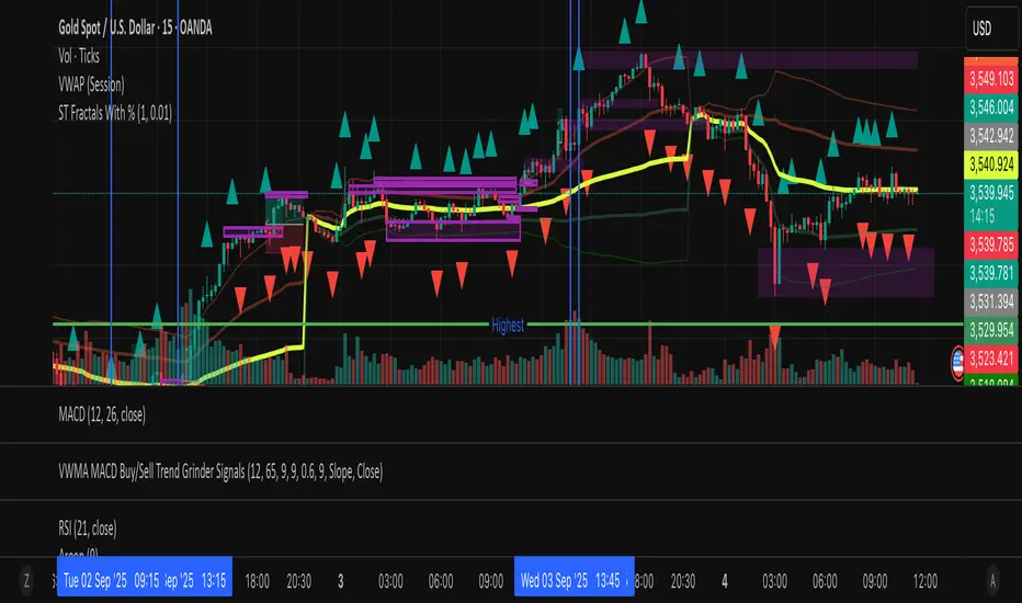 This indicator identifies Williams Fractals on your price chart, helping traders spot potential reversal points and short-term highs and lows. This changes default value to 1 and adds percentage difference similar to ST Fractals option on MT5