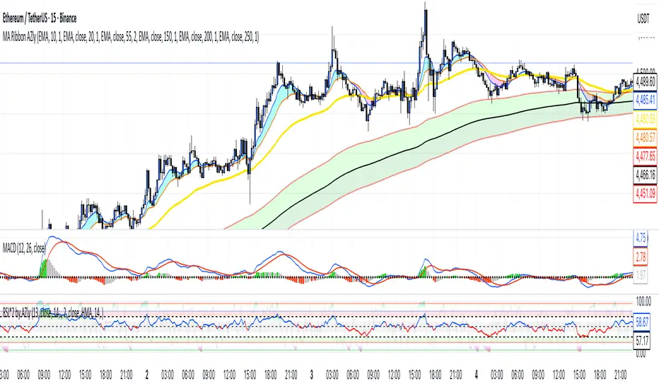 Multi-timeframe use: Combine with a higher timeframe ribbon to confirm overall market bias.