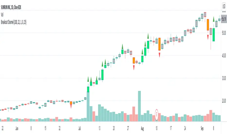 Breakout color is based on whether the value of previous close is higher or lower than present close.