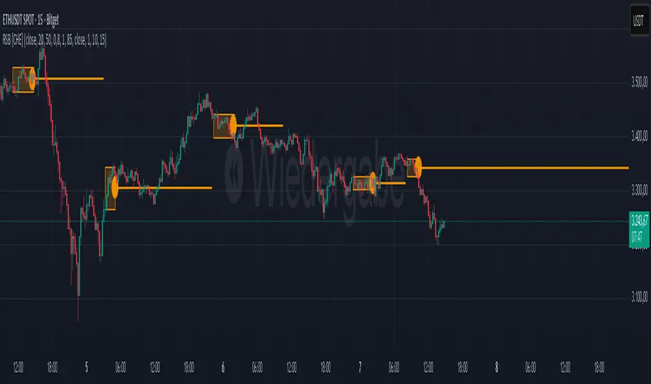 Realtime Squeeze Box [CHE] — Detects lowvolatility consolidation periods and draws trimmed price range boxes in realtime to highlight potential breakout setups without clutter from outliers.