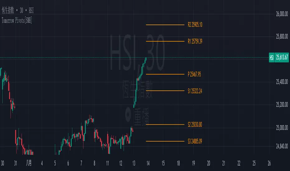 這個TradingView指標不同於內置的Pivot Point指標,因為它能夠提前顯示明天的Pivot Point。透過預測下一交易日的支撐與阻力位置,交易員可以更早部署策略,為隔日的市場波動做好準備。