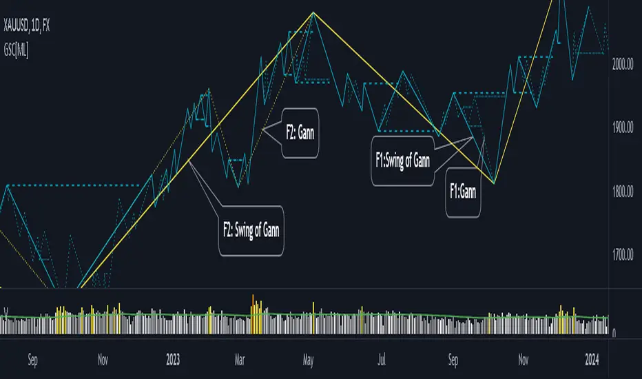 1. Lớp sóng F1(Tương tự như phiên bản trước) : Sóng Gann được vẽ dựa theo nến. Sóng SGann(Swing of Gann) được vẽ dựa trên sóng Gann của lớp sóng F1.