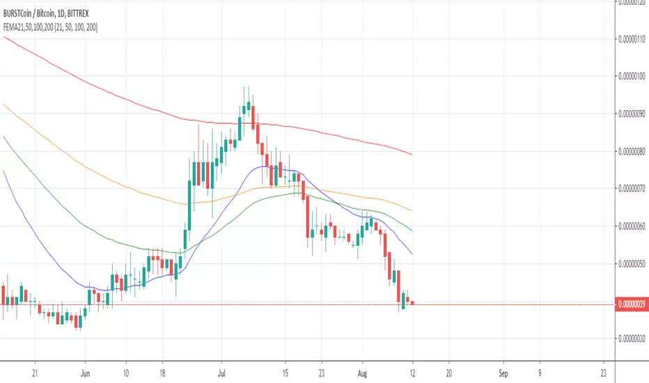 Four Exponential Moving Averages with 21, 50, 100, 200 length