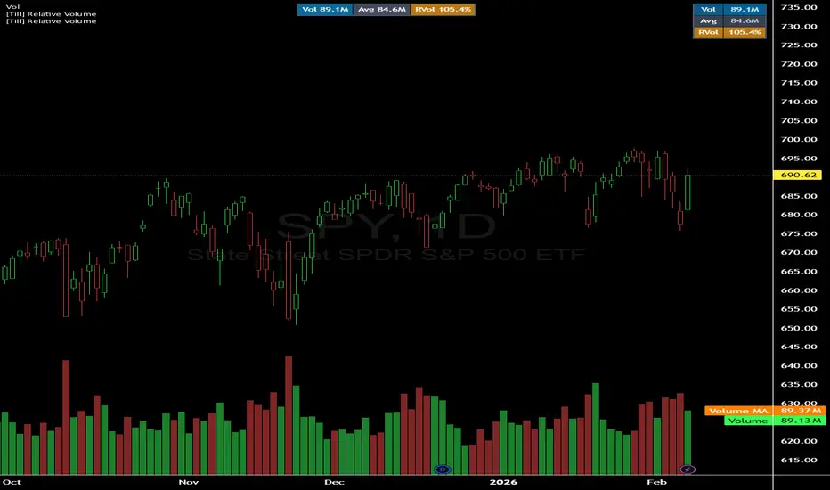 This indicator is designed for quick decision-making: you can instantly see whether today’s trading activity is above or below “normal” for the symbol.