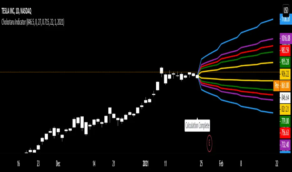 The indicator is based on the partial differential equations from the mathematical model of options, the Black-Scholes model. Using these equations and market parameters the indicator shows on the chart the probability that the stock/future will touch a certain price until a specific date.