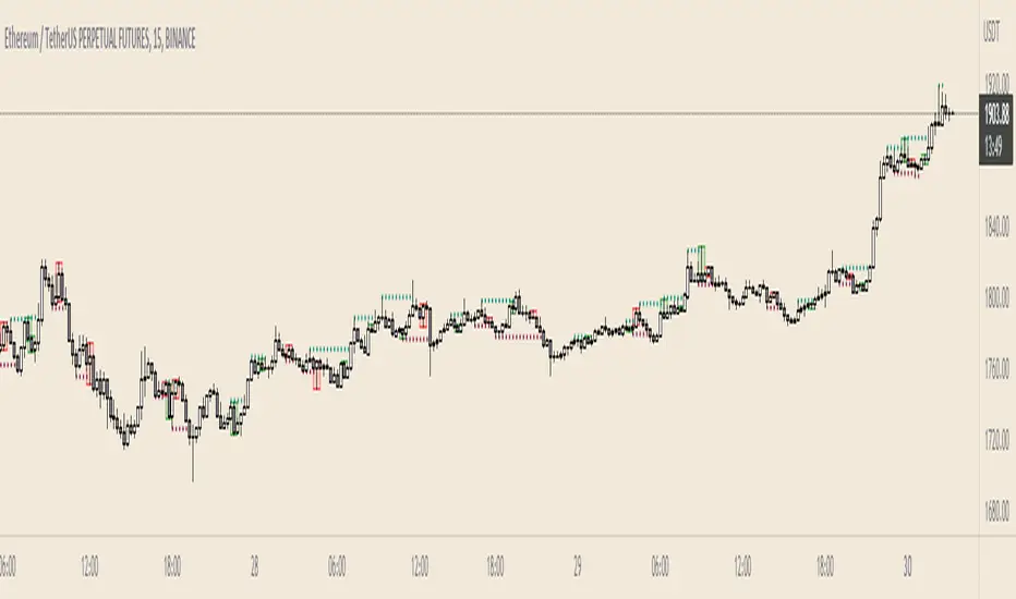 An experimental script, designed as a visual aid, to highlight the last up or down candle before a fractal break. We can assume these candles where the point of origin that generated enough strength to break recent structure. By using them as reference points, traders are expected to follow their own set of rules and mark higher probability supply and demand zones in the area.
