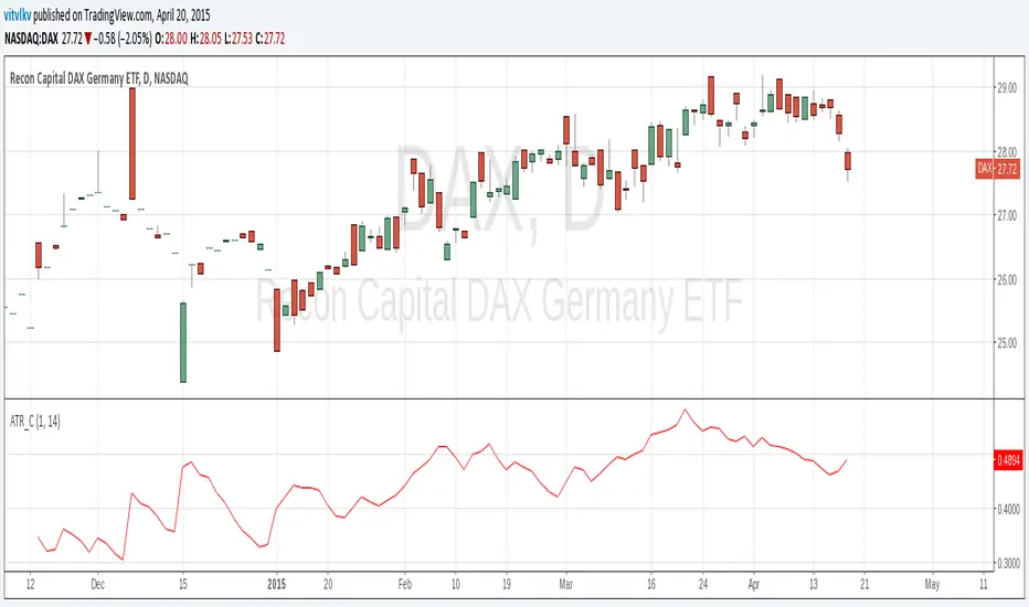 Simple ATR indicator with the input that allows user to select the smoothing algorithm. Classical ATR uses rma smoothing.