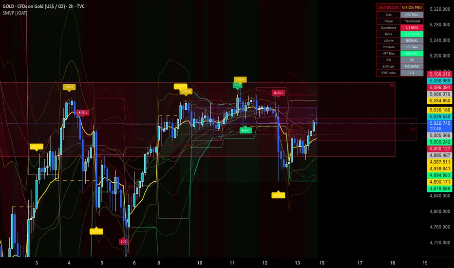 Sharingan Market Vision Pro [JOAT] is a Pine Script v6 overlay indicator that combines Smart Money Concepts (SMC), institutional volume analysis, and multi-timeframe confluence into a unified trading framework. It provides structure-based signals, whale detection, liquidity sweep identification, and a comprehensive dashboard for futures, crypto, forex, indices, and commodities trading.