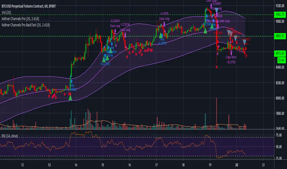 I have included a one hour backtest including slippage and 0.075% commissions to meet most exchanges standards, as you can see it fairs quite well using the opportunities BUY & Sell the Keltner Channel breakouts.