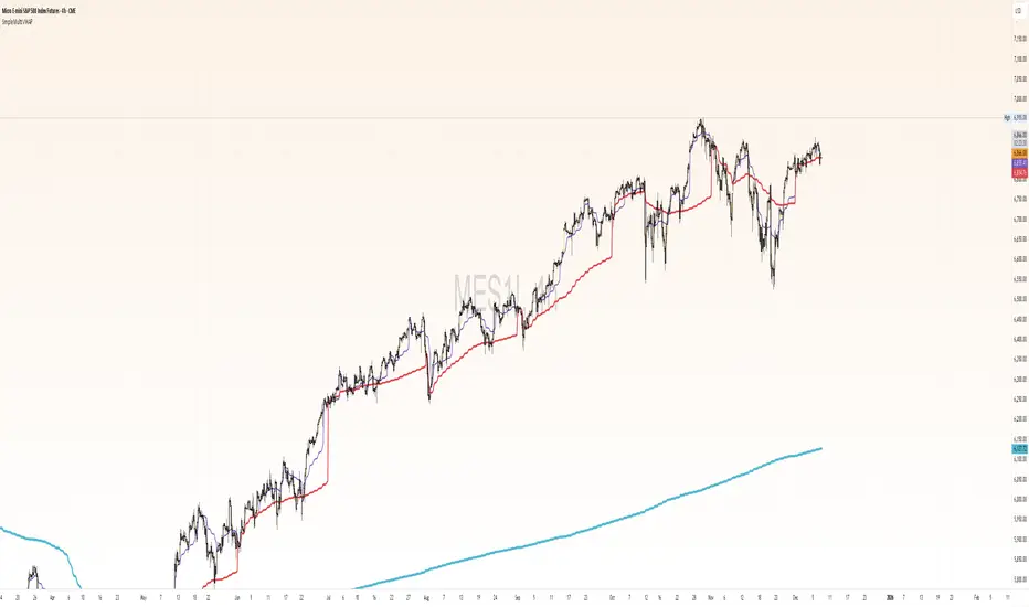 **Simple Multi VWAP** is a powerful Volume Weighted Average Price (VWAP) indicator that allows you to display up to **four independent VWAP lines** simultaneously on your chart, each with its own customisable anchor period. This provides traders with a comprehensive view of volume-weighted price levels across different timeframes, enabling better analysis of price action and support/resistance levels.
