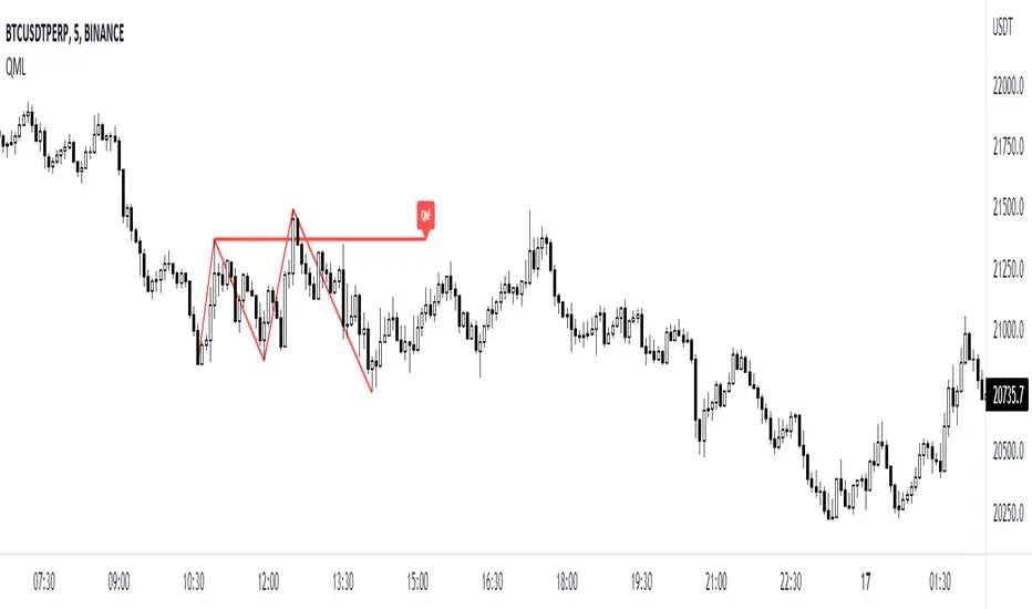 This indicator show the quasimodo patterns on the chart. Quasimodo pattern (QML) is the reversal pattern. This looks like head and shoulder pattern but this have two difference. On the quasimodo, second neck should be lower/higher (lower for the bearish, higher for the bullish) and quasimodo has no second shoulder. Usually QML line is an entry and head point is a stoplos.