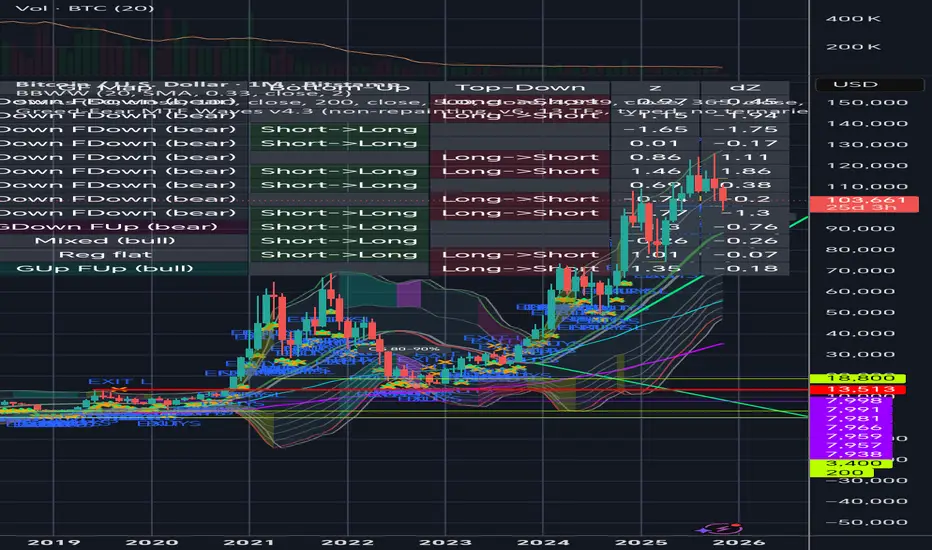 The indicator is based on previous close values. The colors and bands don't change after close. I react to the closed colors. They show increasing/decreasing greed versus increasing/decreasing fear in bullish (increasing Simple Moving Average/mean)/bearish (decreasing SMA/mean) market as waves.