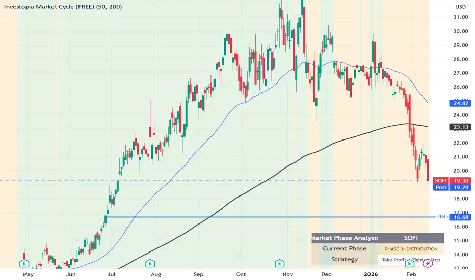 🟠 Phase 3: Distribution (Orange) - Momentum loss. Price drops below the Fast MA while the long-term trend is still bullish. A warning sign for trend exhaustion.