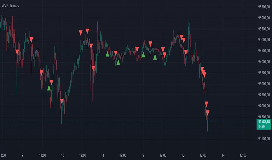 Sell Signal: Generated when the WVF crosses below the upper Bollinger Band or rises above the upper boundary of the percentile-based range.