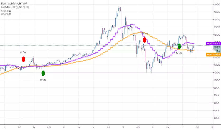 This is a script to apply the crossover/crossunder of moving average multi-timeframes on a different timeframe chart