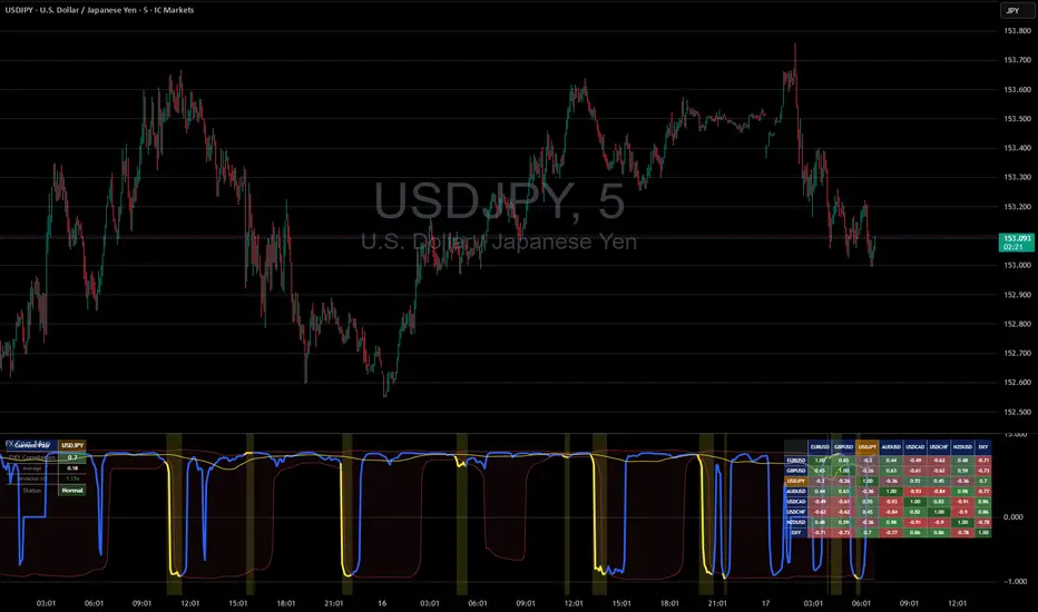 Forex Cross-Asset Correlation Mapper — an indicator for tracking correlations between major currency pairs and the US Dollar Index (DXY).