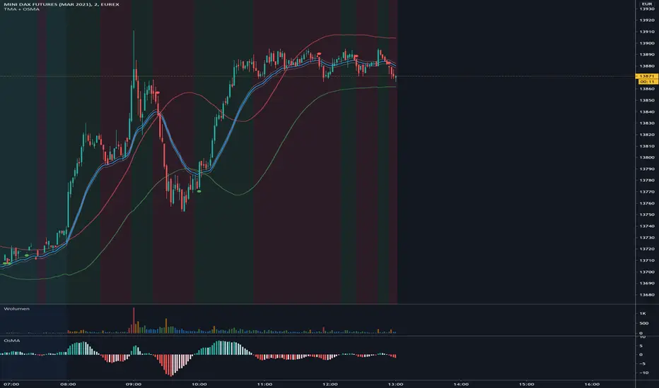System is based on TMA Bands + OSMA + EMA Zone. Signal is generated when: