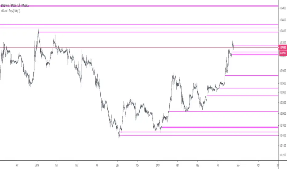 Visualize gaps between 2 bars using the open and close bar values. You can also display old gaps which have been closed which might be helpful for finding older support and resistance areas. The script is a bit heavy to run and probably will need some improvements. At least no more trying to spot a gap on your chart ;-) This script will do it for you.
