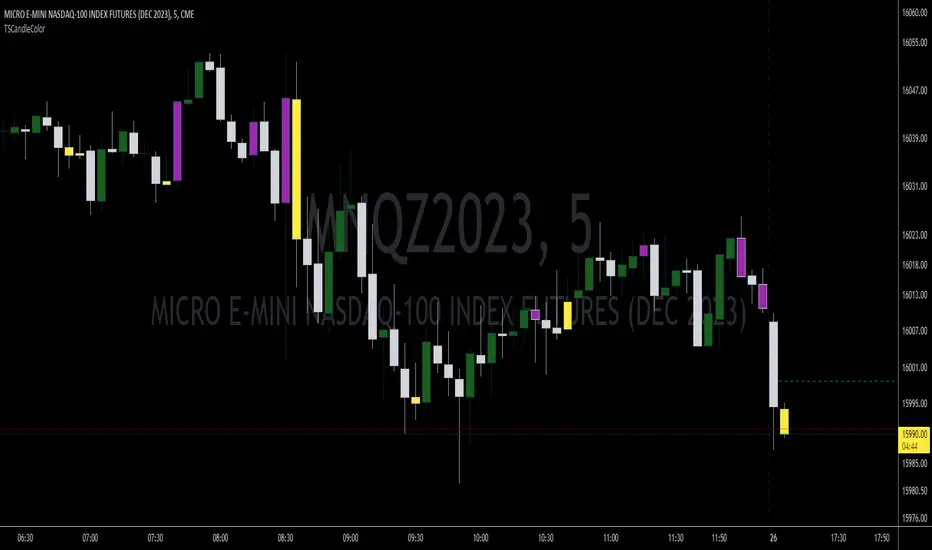 This indicator highlights 1 and 3 candles based on The Strat, created by Rob Smith. In The Strat, candles can only take one of 3 forms, an inside bar or a '1' where the high and low of the current candle are within the high and low of the previous candle, an outside bar or a '3' where the high and low of the current candle are outside of the previous bar, and a '2' bar where either the high or low of the current candle surpasses the previous candle but not both. Since '1' and '3' bars are key to many setups, this script highlights those candles. Highlighted colors are configurable by the user. This indicator further draws a line at the 50% mark of the previous candle for use in conjunction with the teachings of Sara Strat Sniper and her 50% rule. Her 50% rule states that when a '2' candle passes the 50% mark of the previous candle there is a high likelihood of that '2' candle becoming a '3'. Having this already drawn on the chart with each new candle makes it much easier to see this real-time. The color and style of the 50% line is also configurable.