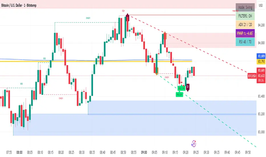 This strategy is built around how I actually trade QQQ intraday: Opening-Range continuation, VWAP trend reads, OI magnets, and a simple but strict risk framework. It’s designed to keep you on the right side of the session theme (trend vs fade), then only take trades when multiple pieces of confluence line up.The strategy is tuned for QQQ on intraday timeframes, but the logic is generic enough to experiment with other liquid index products. It’s not financial advice—use it as a structured framework for reading OR, VWAP, and trend strength, and then layer your own execution rules and risk management on top.