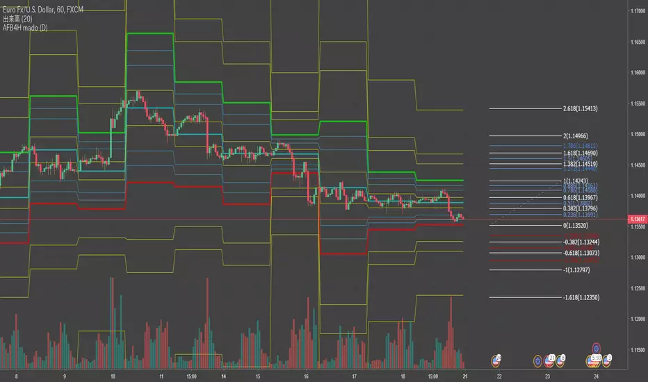 Previous day's High-Low based Fibonnacci Retracement(today's open=0.5 line)