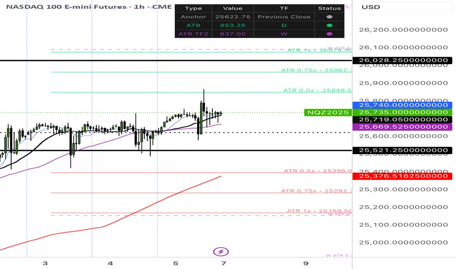 A powerful predictive tool that projects ATR (Average True Range) and ADR (Average Daily Range) levels as clean support and resistance arrays on your chart. Designed for traders who want to anticipate the high and low of the day using volatility-based projections with multi-timeframe confluence.