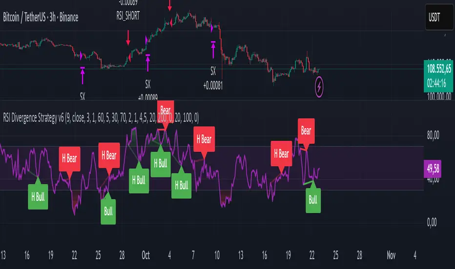 • This version by tagstrading 2025 adds: improved pivot engine, RSIpivot gating, normalized strength + optional volume gate, delayed entries, rigid SL and activatable trailing, and a gap-free RSI gradient.