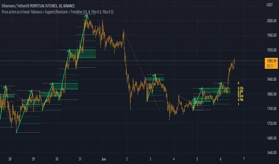 In this indicator, I find entry long/Short by combining: Fibonacci + Support/Resistant + Trendline (One of Advanced Price action Analysis).